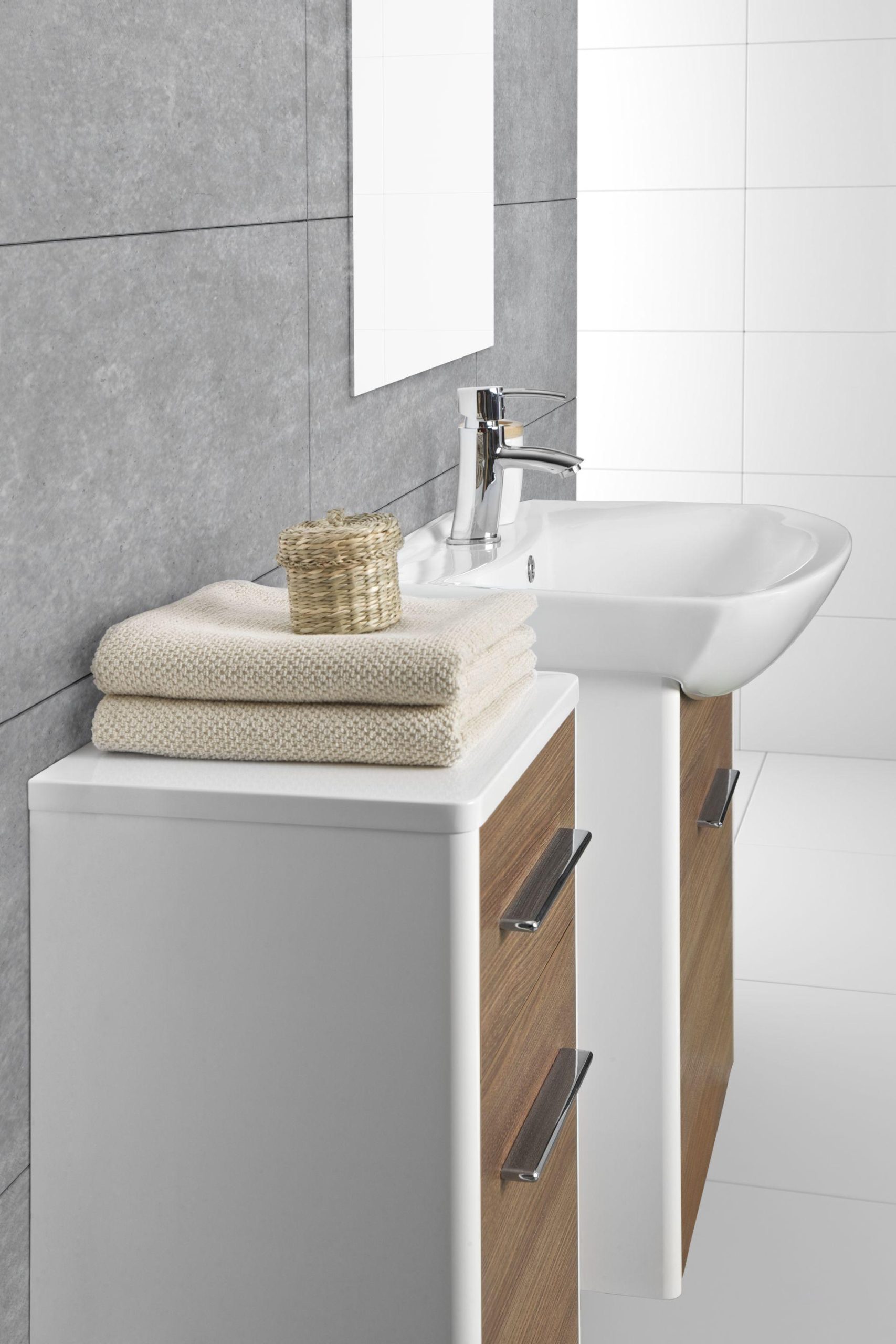 Linia SELLA to trzy kolekcje wzorniczo minimalistycznych mebli łazienkowych oraz dopasowana do nich ceramika. Seria Platinum łączy neutralny, biały korpus z drewnianymi frontami w stylu eko. Podwieszane meble idealnie wpasują się do designerskiego wnętrza, gdzie cenione są innowacyjne rozwiązania. Sella Silver to ukłon w stronę wielbicieli klasycznej bieli. Cienkie, chromowane uchwyty podkreślą nowoczesny charakter wystroju. Kolekcję Gold natomiast charakteryzują wpuszczane uchwyty w chromie matowym, współgrające z drewnianymi frontami. Dodatkowym atutem we wszystkich trzech seriach są pojemne szuflady wyposażone w prowadnice z pełnym wysuwem oraz szafki z systemem cichego domykania drzwiczek. Zastosowane technologie zwiększają funkcjonalność wyposażenia i komfort ich użytkowania. Cała seria mebli z linii SELLA wykonana jest z materiałów odpornych na wilgoć. Obrzeża ABS, zabezpieczają przed zawilgoceniem poszczególnych elementów wyposażenia.