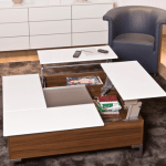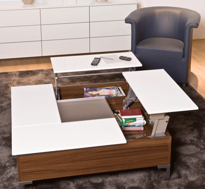 Wielozadaniowe akcesoria można zastosować również w salonie. Kiedy się przydają? Między innymi wtedy, kiedy dla spójności aranżacji trzeba wybrać jeden mebel, ale o dwóch zastosowaniach. Gdy np. stylowy stolik powinien pozwolić na przyjemne spotkanie przy filiżance kawy, a zaraz potem zmienić się w wygodne miejsce pracy z laptopem. – Nie trzeba długo szukać, by znaleźć i takie rozwiązania. Wykonawcy mebli mogą polecić system Tavoflex. To okucie działające na zasadzie podnośnika, który unosi część blatu stolika do pewnej wysokości, tym samym stając się miejscem pracy – tłumaczy Marcin Małecki. – We wnętrzu mebla można z kolei ukryć gazety, książki lub drobną elektronikę, co nadaje wyposażeniu trzecią funkcję.