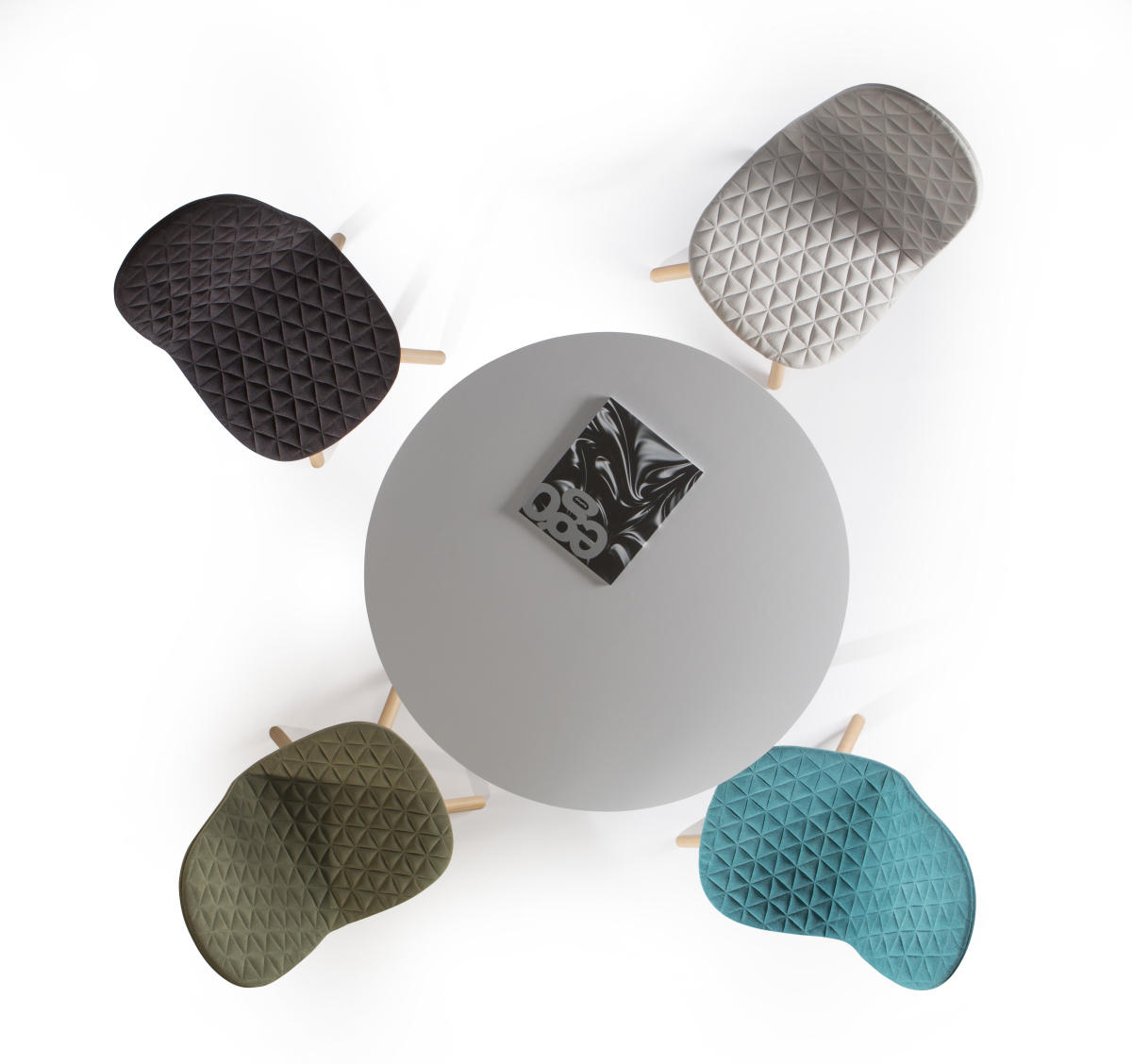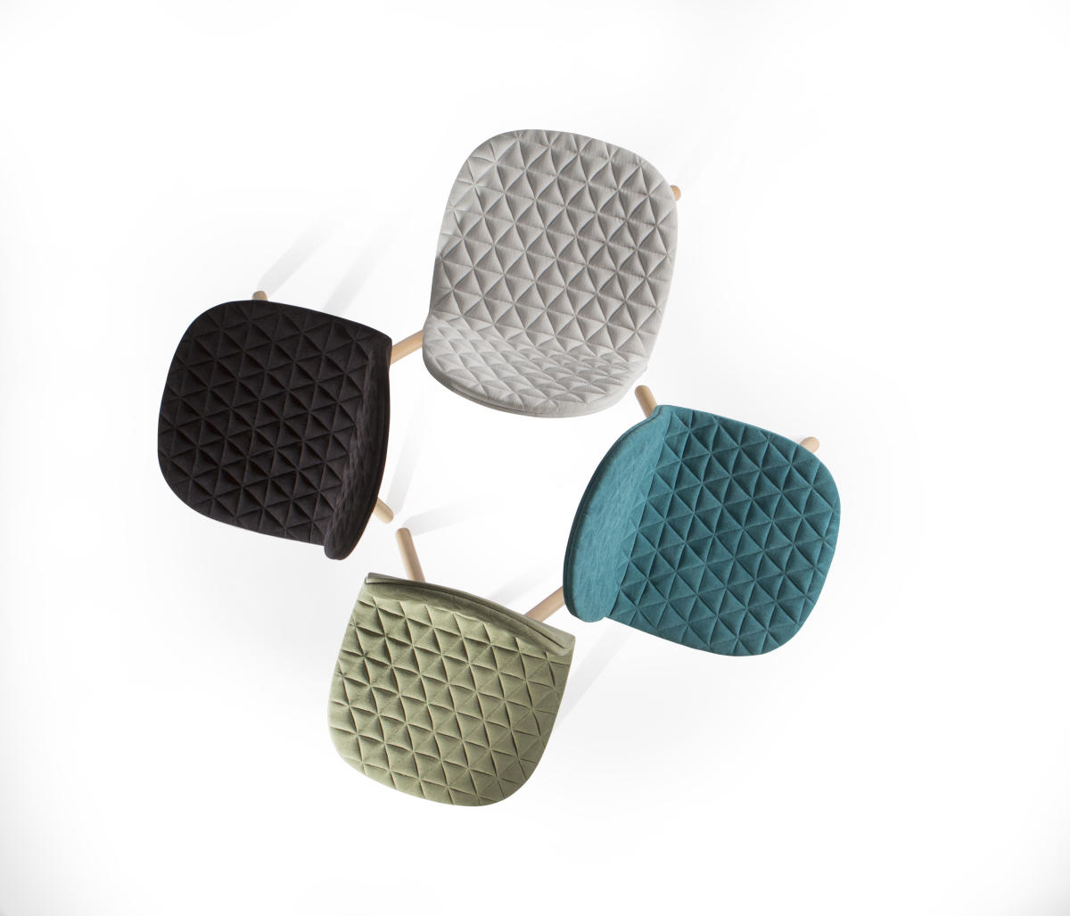 Stelaż premierowego krzesła „Mannequin” wykonany został z naturalnego, bukowego drewna. Cztery owalne nogi złączone są u podstawy, nadając meblu intrygującego wyglądu, a jednocześnie wzmacniając jego stabilność. Samo siedzisko posiada ergonomiczny kształt dzięki precyzyjnie i z wdziękiem wygiętej sklejce. By komfort użytkowania był jeszcze większy, pokryto je tkaniną dostępną w 11 modnych, zarówno neutralnych, jak i bardziej ekstrawaganckich kolorach.