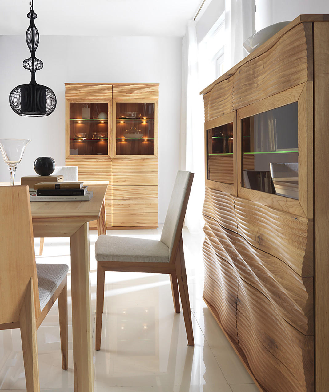 Stworzona z litego drewna dębu „dzikiego” lub buku twardzielowego kolekcja K9 firmy Klose to propozycja dla tych, którzy doceniają wartość designu, jako elementu przyjaznego człowiekowi, bliskiego sztuce i rzemiosłu. Proste, geometryczne kształty mebli nie poddają się stereotypowym ocenom. Miękkie fale frontów przełamują rygor nowoczesnej powściągliwości – sprawiają, że zwarte bryły pomimo masywności są niezwykle efektowne i niebanalne. Surowe piękno naturalnej materii podkreśla dodatkowo zastosowana technika wykończenia.