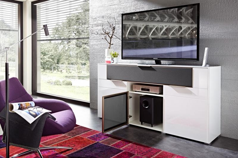 Wszystkim, którzy zmagają się z tego typu problemami polecamy multimedialną kolekcję Median. System mebli zaprojektowanych z myślą o organizacji okablowania oraz sprzętów RTV został wyposażony w rozwiązania ułatwiające codzienną organizację elektroniki. Ale to nie wszystko, meble Median posiadają specjalną tkaninę akustyczną, dzięki której dekoder oraz elementy hi-fi można bezpiecznie ukryć we wnętrzu i swobodnie z nich korzystać. Tkanina doskonale przepuszcza dźwięk płynący z głośników oraz sygnał pilota, co umożliwia sterowanie urządzeniami bez konieczności otwierania szafek. Kolekcja dostępna jest wyłącznie w salonach Black Red White.