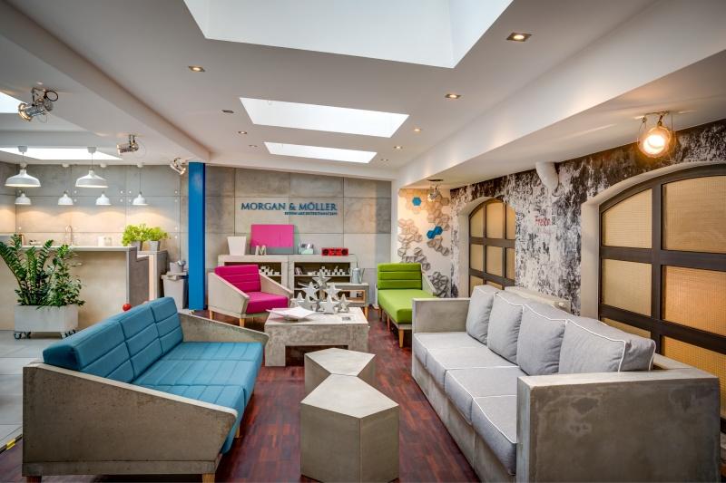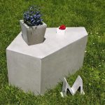 Przemyślany, choć nie jest to takie oczywiste, o konstrukcji innej niż wszystkie, tworzącej bryłę będącą skrzyżowaniem pięciokątów, prostokątów i kwadratów. Wygląda na cięższy niż jest naprawę. Taki jest Pentagon Morgan & Möller stworzony z betonu architektonicznego, niestandardowy przedmiot pożądania i mebel i stolik i siedzisko w jednym. Dzięki pustemu wnętrzu jest niezwykle lekki jak na beton (ok. 40 kg).