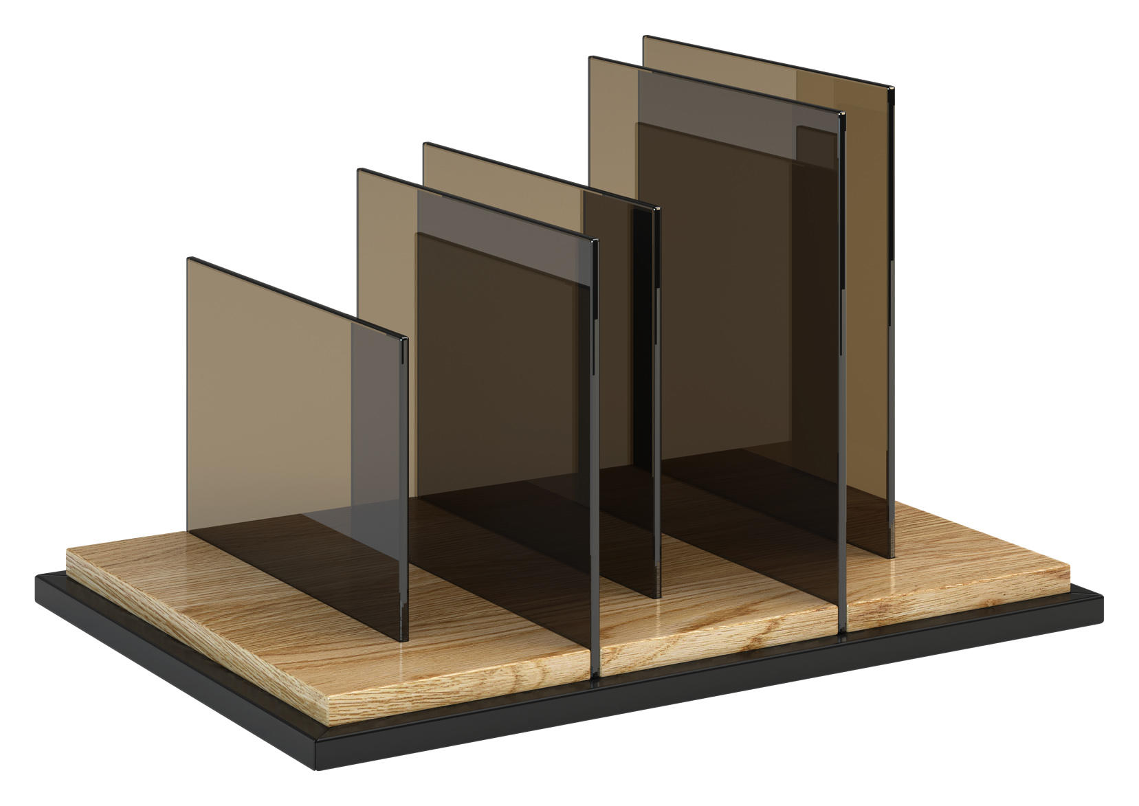W domowej bibliotece nie powinno zabraknąć również użytecznych gadżetów czytelniczych, takich jak stojaki na książki i gazety bądź pasująca do nowoczesnej stylistyki wnętrza lampa o geometrycznej formie, przy której miło będzie poczytać przed snem ulubioną lekturę. Te niewielkie dekoracyjne przedmioty komponują się idealnie ze wszystkimi meblami kolekcji.