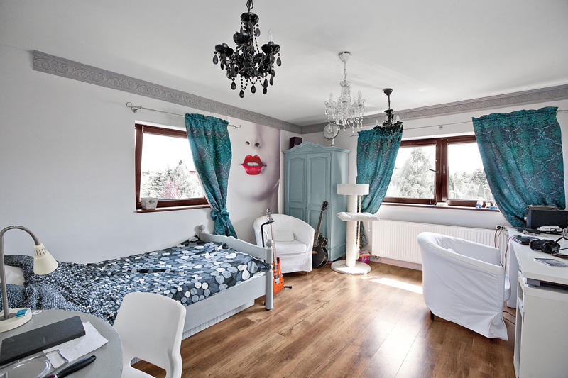 Każdy z domowników ma swój intymny azyl w postaci sypialni z niewielką garderobą, który w pełni odpowiada ich indywidualnym potrzebom. Decydując się na taki podział przestrzeni, właściciele, na przekór panującym trendom, odrzucili pomysł, który zakładałby urządzenie kilku łazienek. Nie chcieli, aby dom rósł ponad miarę i dlatego zdecydowali się zrezygnować z tego luksusu.
