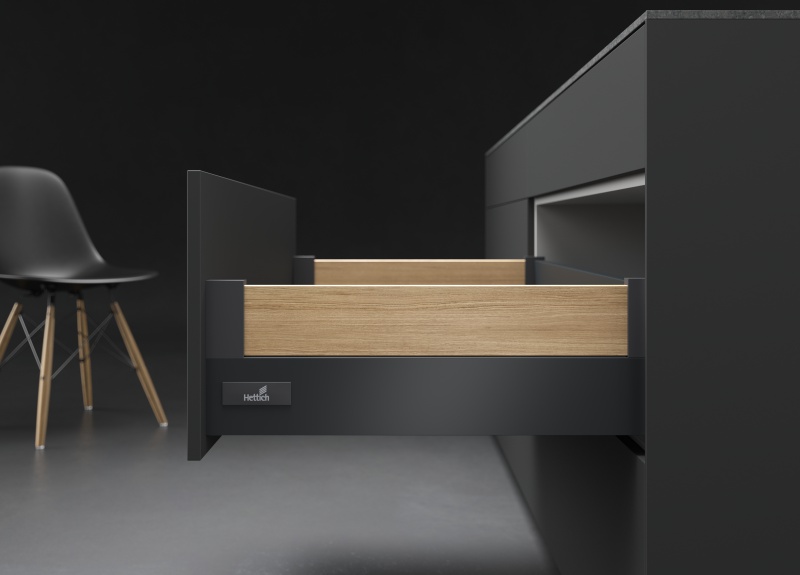 – Niezawodny system do frontów przesuwnych SlideLine M pozwala jednym ruchem dłoni otwierać i zamykać poszczególne segmenty meblościanki, elastycznie kształtując układ mebla – wyjaśnia Joanna Nowak z firmy Hettich Polska. – Fronty przesuwają się lekko i bezgłośnie, dzięki amortyzacji Silent System dyskretnie zintegrowanej w elemencie jezdnym okucia. Fronty nie wymagają montażu uchwytów, dzięki czemu możemy zachować minimalistyczny design gładkich powierzchni.