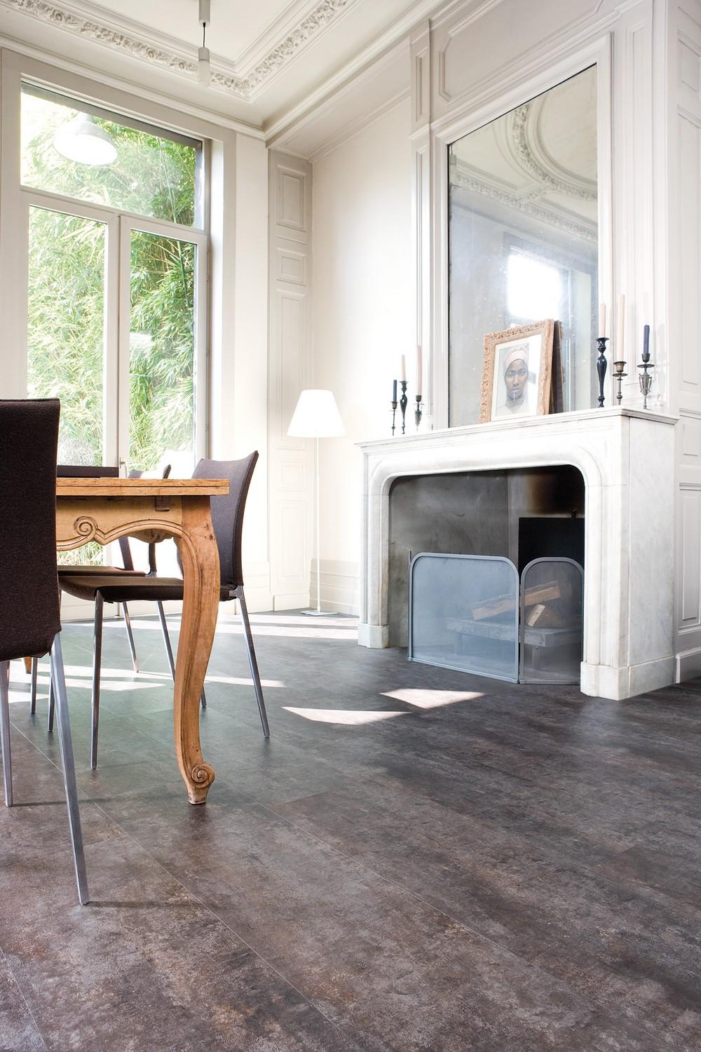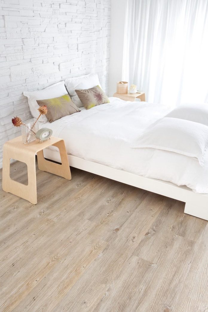 Propozycją takiego rozwiązania mogą być podłogi marki Wicanders – Vinylcomfort. Matowa powierzchnia połączona z różnorodnymi wzorami imitującymi drewno, metal czy naturalny kamień wiernie odzwierciedla dany materiał. Połączenie funkcjonalności z eleganckim designem to satysfakcjonujący wybór dla współczesnego, wymagającego domownika. Podłoga wyposażona jest w warstwę izolującego korka, a tłoczona powierzchnia nadaje jej naturalności, co czyni ją bardzo atrakcyjną. Uniwersalna kolorystyka podłogi Alaska Oak będzie podkreślać eleganckie umeblowanie, natomiast odcień Raw Umber sprawdzi się jako wyrafinowana podstawa dla znajdujących się tu mebli. Kolorystyka ścian powinna być utrzymana w jasnych tonacjach, aby wyeksponować luksusowe przedmioty i zachować równocześnie tak popularny obecnie nowoczesny design.
