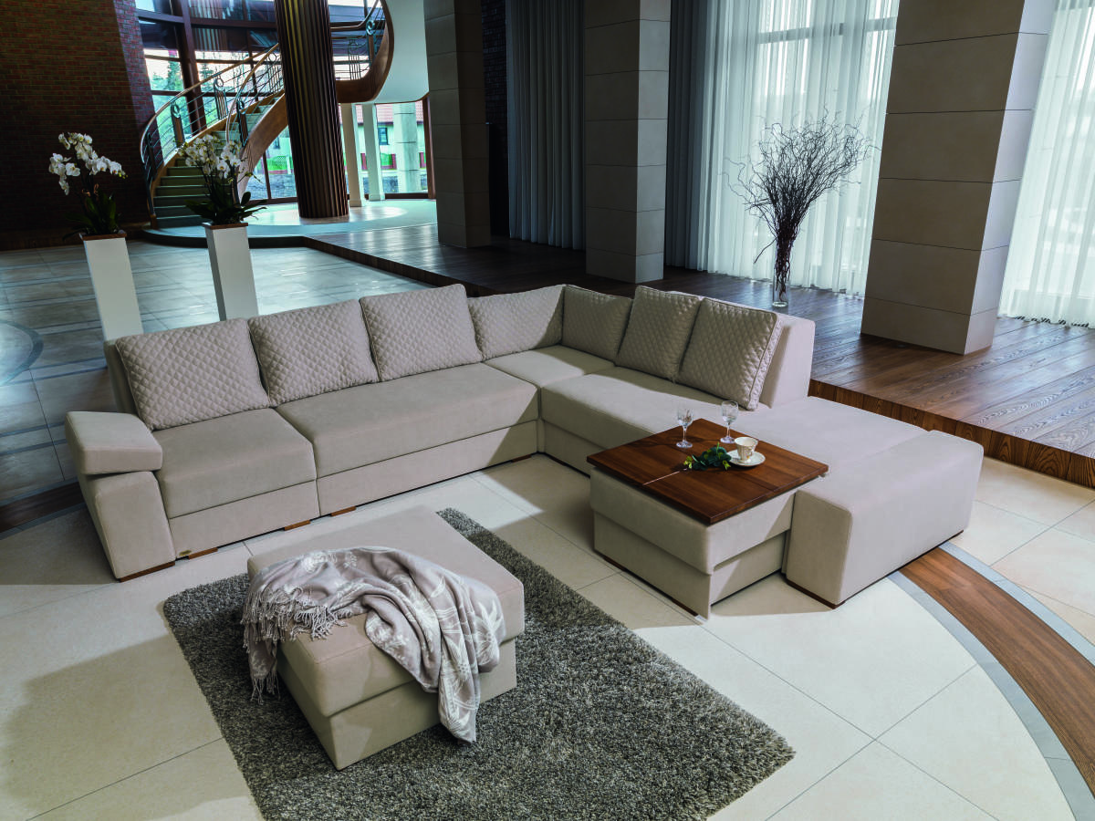 Meble, które ozdobią wnętrze utrzymane w nowoczesnym klimacie, powinny być jak najbardziej funkcjonalne. Takie też są elementy wchodzące w skład linii Plaza 2. I tak, narożnik wyposażony został w regulowane podłokietniki, które zapewnią komfort wypoczynku oraz narożną półkę drewnianą. Dodatkowo, zestaw zawiera pufę o geometrycznym kształcie, którą można nabyć z nakładką, wykonaną z najwyższej jakości drewna jesionowego. Dzięki temu praktycznemu rozwiązaniu wygodna pufa z jednej chwili zamienia się w stolik, na którym z powodzeniem postawić możemy filiżankę kawy czy książkę. Co również warte podkreślenia Plaza 2 to propozycja, która daje możliwość dowolnej konfiguracji, zgodnie z własnymi potrzebami.