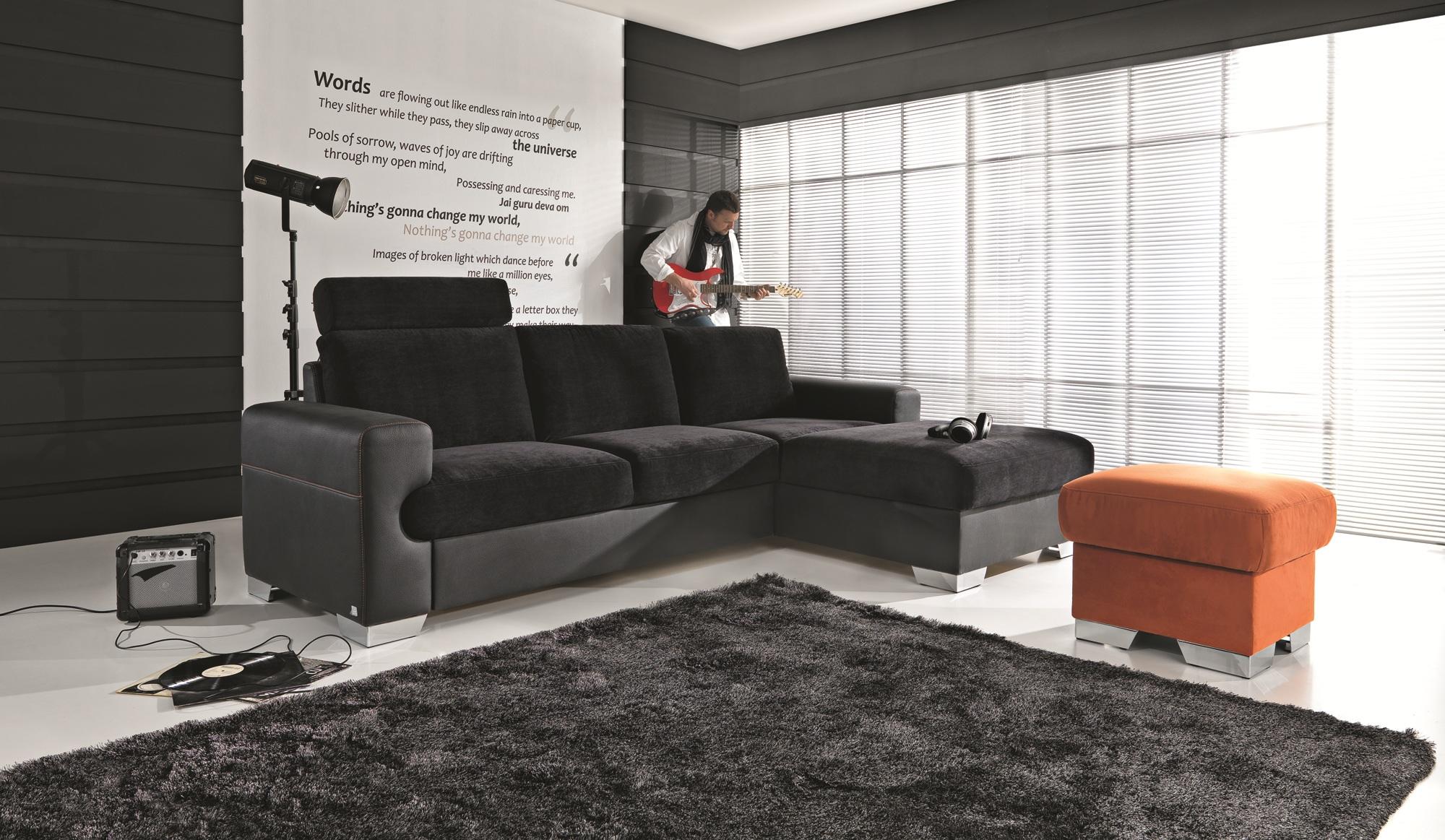 Etapem „wykończeniowym” naszego projektu mebla może być zastosowanie funkcjonalnych dodatków, takich jak: zwiększające komfort zagłówki, pufy z głębokimi pojemnikami czy wolnostojące stoliki. Ciekawym zaznaczeniem tych niezależnych form może być dobranie innej, kontrastującej z pozostałymi elementami tkaniny.