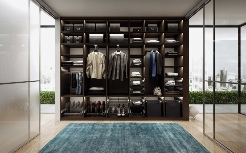 Czy jest miejsce na nadmiar w prostocie? Oczywiście! Musi być tylko dobrze opanowany. Wystarczy dobrze zaprojektowana garderoba, a z łatwością zorganizujemy nawet zbyt dużą kolekcję ubrań. Co więcej – nie potrzebujemy do tego oddzielnego pomieszczenia. Projektanci marki Komandor udowadniają, że garderobę można stworzyć niemal wszędzie. Nawet w korytarzu między pokojami. Wykonana z płyty laminowanej garderoba ma wewnętrzne podświetlenie, co ułatwia nawigację w jej zawartości. Otwarta zabudowa z dużą liczbą półek i wysuwnych koszy ułatwiają przechowywanie. Jest miejsce na bieliznę, odzież i obuwie. System wieszaków dostosowujemy wysokością do długości ubrań. System akcesoriów ułatwia utrzymania porządku. A to wszystko – z zachowaniem wizualnego ładu i prostoty. Tutaj każdy przedmiot ma swoje miejsce.