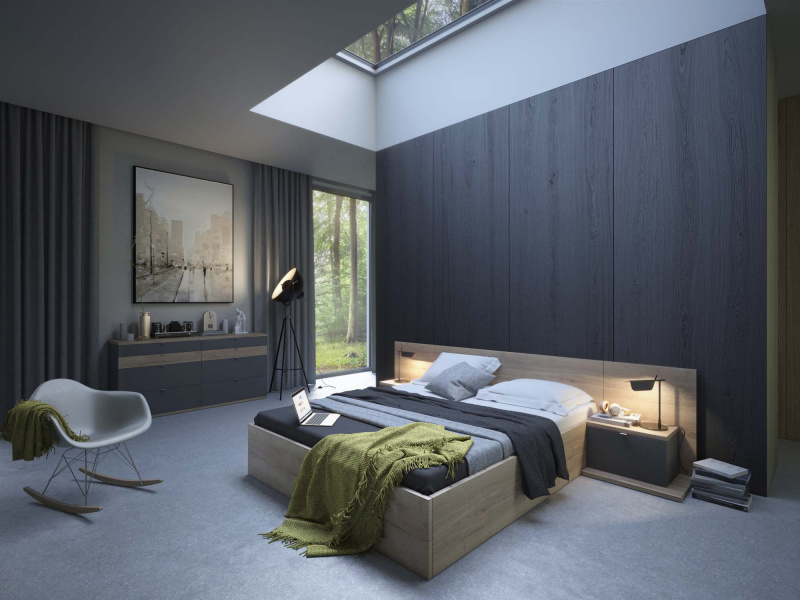 W sypialni kluczowe są: łóżko, tekstylia oraz dobre świetlenie. Wygodne do nas miejsce do spania, to podstawa codziennego odpoczynku. Łóżka na wymiar z linii Nine Duo od marki Komandor można dokładnie dopasować do naszych potrzeb oraz wymiarów pokoju. Pojemnik pod stelażem pozwala zachować porządek we wnętrzu, a prosta, nowoczesna bryła i solidna konstrukcja zapewniają komfort, bezpieczeństwo oraz wygodę. Więcej w sypialni nie trzeba. Aby poprawić akustykę możemy pomyśleć jeszcze o winylowych tapetach na zagłówku czy o miękkiej wykładzinie. Ideałem by było, jeśli możemy jeszcze wstawić tu komodę albo toaletkę – ale tylko pod warunkiem, że nie stracimy przez to przestrzeni oraz miejsca na oddech.