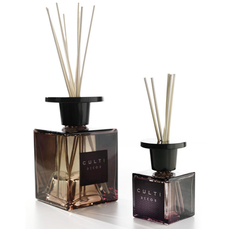 CULTI jest marką założoną w 1990 roku przez Alessandro Agrati. W szybkim tempie zyskała szerokie grono wielbicieli, dzięki wyjątkowej i luksusowej kolekcji perfum dla domu. Delikatne, subtelne, pobudzające zmysły zapachy inspirowane są czterema żywiołami: Powietrzem, Ogniem, Wodą i Ziemią. W showroomie DADO DESIGN dostępna jest seria DECOR, która kryje w sobie delikatne, śródziemnomorskie zapachy, podkreślone drzewem cytrusowym oraz nutą pomarańczy. Wykreują niepowtarzalną atmosferę w Twoim domu i pobudzą zmysły. Substancje zapachowe uwalniane są wolno i stopniowo, dzięki czemu jeden flakonik starcza na 4 – 6 miesięcy, w zależności od wielkości dyfuzora. Wszystkie zapachy tworzone są przez włoskich rzemieślników, według tradycyjnej, włoskiej sztuki perfumeryjnej.