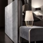 Najnowszą propozycję Cantori można obejrzeć na ekspozycji w salonie meblowym Heban – jej utrzymana w tonacji fioletu aranżacja jest niemal wiernym odtworzeniem tej prezentowanej podczas mediolańskich targów. Wnętrze oświetlone niebanalnie dwoma wiszącymi nisko lampami Sofia, również pochodzącymi z oferty Cantori. W centralnym miejscu znajduje się oczywiście łoże Elvis wraz z szafkami nocnymi, a towarzyszą mu elegancka toaletka, duże ścienne lustro, fotel bujany i biblioteczka o ażurowej konstrukcji. Efektowną całość dopełnia puszysty dywan i starannie dobrane dekoracyjne bibeloty. Ta aranżacja jest bardzo nastrojowa – oddaje klimat intymnego, a zarazem bardzo eleganckiego wnętrza.