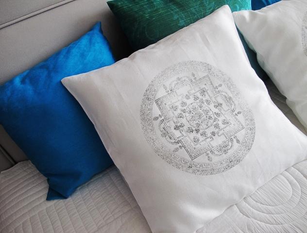 Bardzo ciekawym elementem dekoracyjnym okazały się mandale, które zawisły naprzeciwko drewnianej ściany oraz pojawiły się na poduszkach. Mandala wywodzi się z tradycji hinduskiej, a jej nazwa oznacza „koło życia, cały świat, święty krąg”. Koło uważane jest za symbol harmonii i doskonałości. Buddyści zaczerpnęli z tradycji hinduskiej mandale, gdyż ich wykonywanie oraz patrzenie na nie traktują, jako formę medytacji.