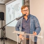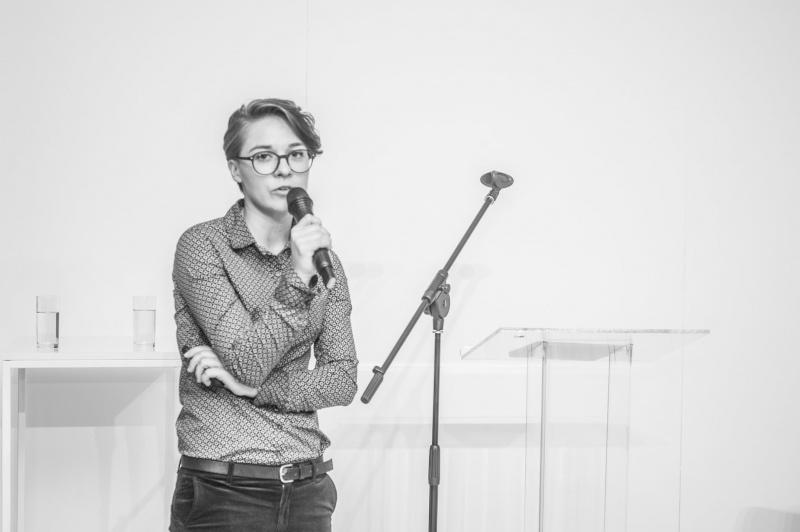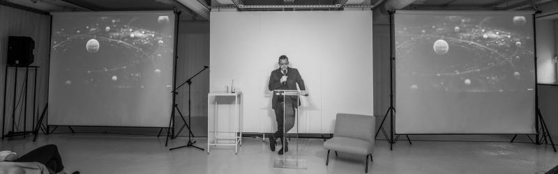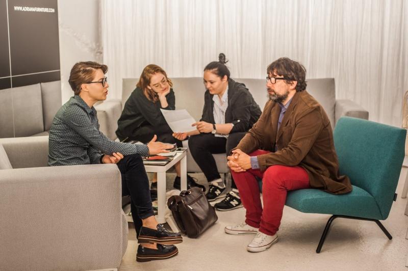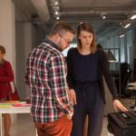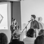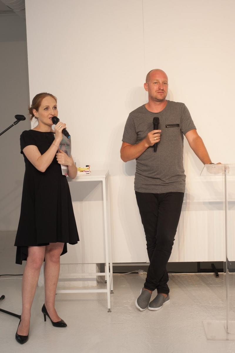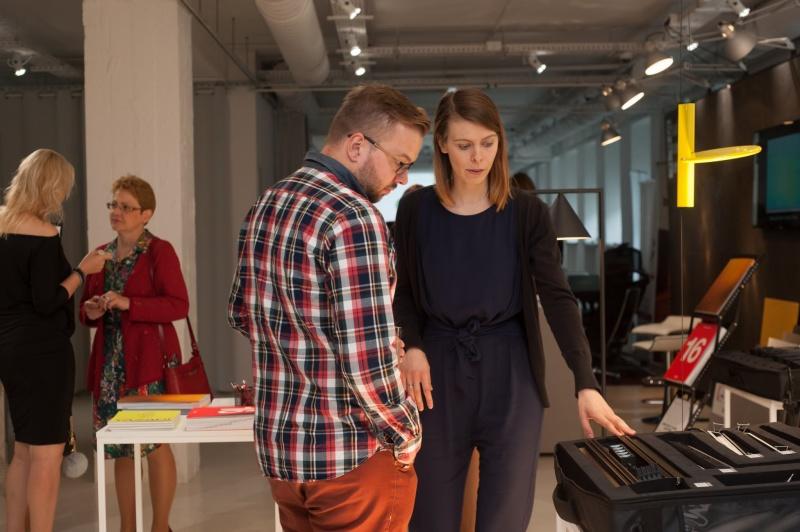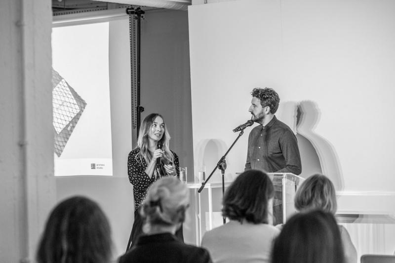 Marta Niemywska-Grynasz oraz Dawid Grynasz z Grynasz Studio w ramach wykładu „Mikro/ Makro” opowiedzieli o swoich projektach dla polskich firm i instytucji oraz pokazali realizacje operujące skalą przedmiotu, jak i projekty scenografii do dużych wystaw i działań w przestrzeni.