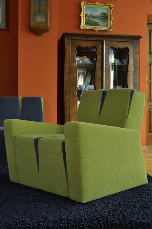 Sofy i fotele BLOXX to pierwszy projekt studia AZE Design dla firmy HM Design. Nowoczesna forma z ciekawymi konstrukcyjnymi i tapicerskimi detalami znakomicie prezentuje się w zestawieniu dwóch kolorów tkaniny Perfecta firmy ITALVELLUTI.