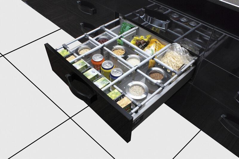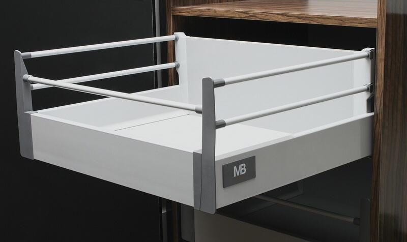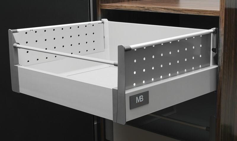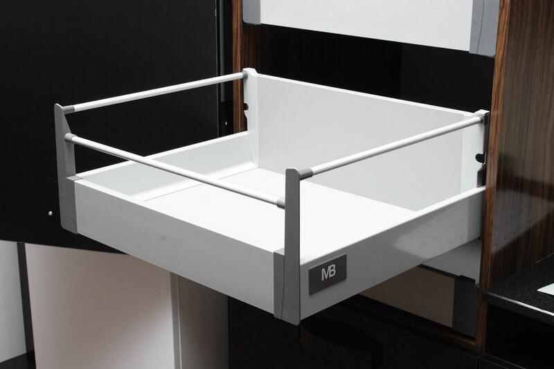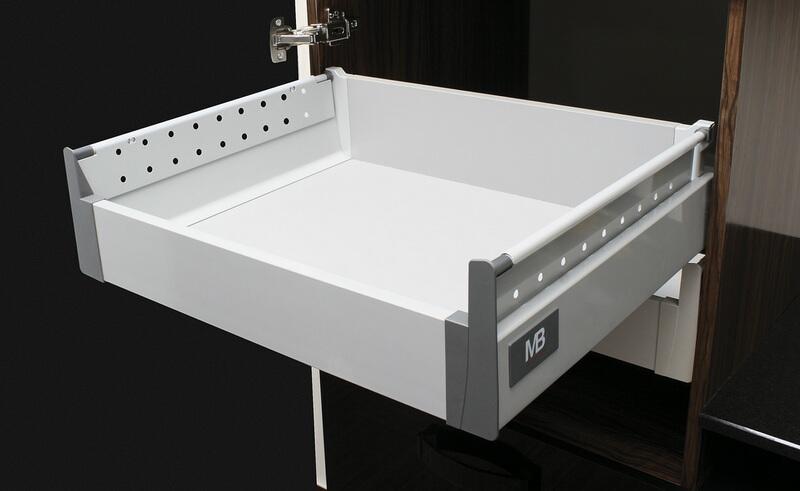 Wraz z gwarancją najwyższej jakości wykonania, GTV wprowadza również rozszerzoną ofertę akcesoriów do Modern Box’a. Standardowa propozycja szuflad Modern Box została poszerzona o rozwiązania pozwalające ergonomicznie i efektywnie wykorzystać trudnodostępne miejsca tj. szuflada do szafki narożnej, szuflada pod syfon, szuflada pod zlewozmywak. System MB obejmuje trzy wysokości szuflad, które mogą być dowolnej szerokości. Możemy zastosować perforowane, relingowe lub szklane wypełnienia boków szuflad. W standardowej ofercie znajduje się mleczne szkło. Osoby wymagające zapewne zainteresuje możliwość naniesienia dowolnej, designerskiej grafiki. W ofercie pojawią się także nowe aluminiowe panele frontowe do szuflad wewnętrznych.