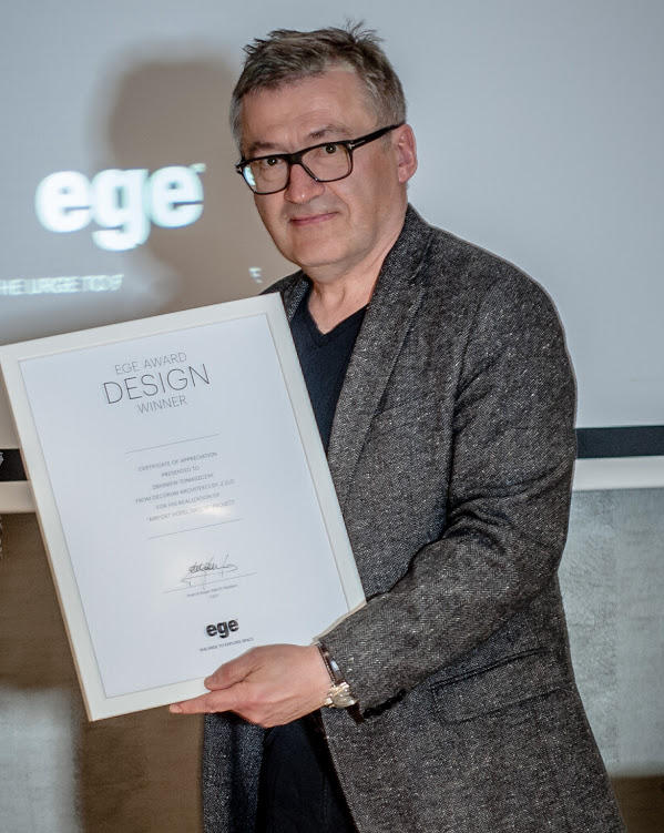 Seminarium Carpet Studio zostało zorganizowane w Airport Hotel Okęcie **** w Warszawie. Lokalizacja eventu nie była przypadkowa, gdyż wnętrza tego obiektu należą do prestiżowych realizacji Carpet Studio. Ich autorem są architekci z pracowni Zbigniewa Tomaszczyka i Ireny Lipiec – Decorum Architekci Sp. z o.o. Zbigniew Tomaszczyk obecny podczas spotkania, został uhonorowany dyplomem uznania za dotychczasową współpracę z firmą EGE. Architekt opowiedział o swoich dotychczasowych doświadczeniach związanych z duńską marką, m.in. o możliwościach i przebiegu współpracy przy realizacji autorskich projektów wzorów wykładzin.