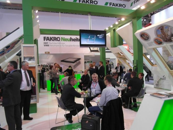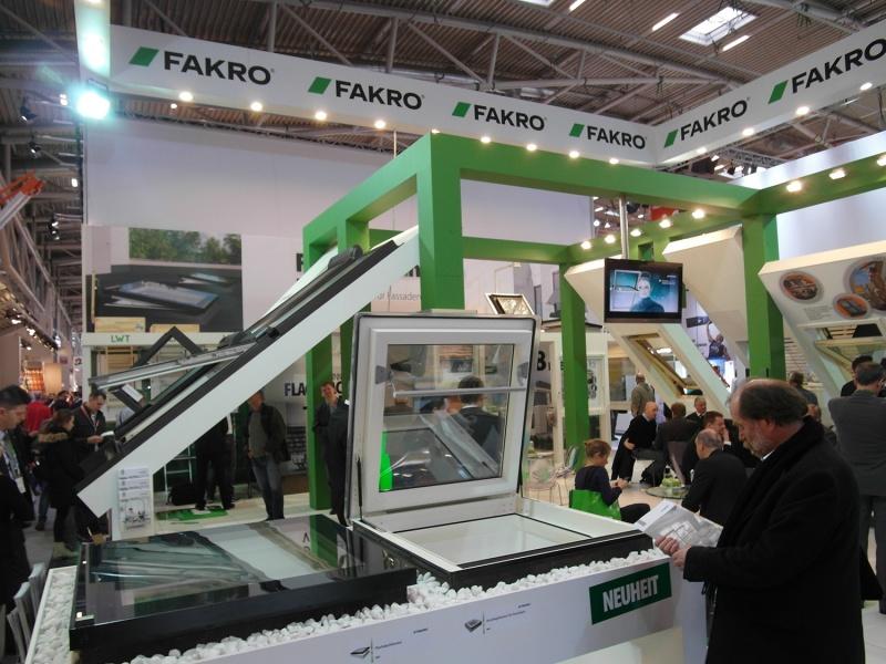Odwiedzający stoisko FAKRO goście mieli okazję zapoznać się z szeroką gamą produktów do dachów płaskich, okien dachowych i wyłazów. Największym zainteresowaniem cieszyło się otwierane elektrycznie okno do dachów płaskich typu DEF, łączące w sobie wysoką funkcjonalność i doskonałe parametry termoizolacyjne. Firma zaprezentowała także markizę Solar – innowacyjne rozwiązanie pozwalające na skuteczną ochronę poddasza przed nagrzewaniem. Na stoisku targowym o powierzchni ponad 100 mkw można było obejrzeć okno balkonowe FGH-V Galeria i superenergooszczędne okno FTT U8 Thermo. FAKRO, które specjalizuje się także w produkcji schodów strychowych i już jest numerem dwa na świecie, przedstawiło swój najnowszy produkt – energooszczędne schody strychowe LWT. Dużym zainteresowaniem cieszyło się także okno dachowe o podwyższonej osi obrotu wykonane z PCV, w okleinie koloru sosny z markizą AMZ sterowaną z pomocą iPhona w technologii Bluetooth. Zwiedzającym trudno było uwierzyć, że to produkt wykonany z PCV a nie z drewna.