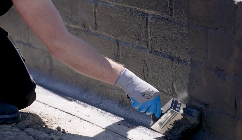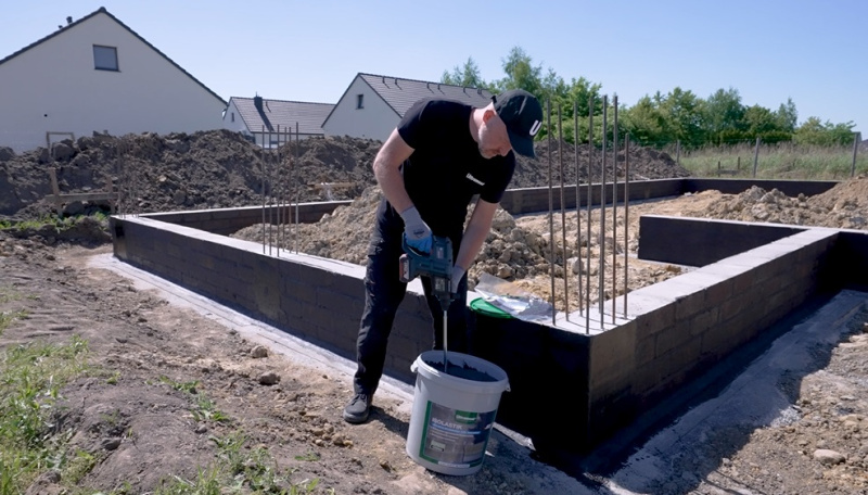 Następnie na fundamenty nakłada się cienką warstwę gruntu bitumicznego, wcześniej wymieszanego w proporcji 1:1 z wodą. Środek ma formę koncentratu, który aplikuje się na podłoże za pomocą pędzla. Czas schnięcia gruntu bitumicznego to ok. 30-60 minut. Co ważne, wystarczy jedna warstwa, aby skutecznie zwiększyć przyczepność izolacji bitumicznej oraz wyrównać jej chłonność.