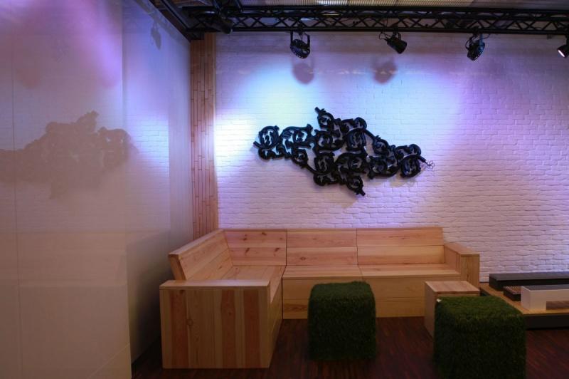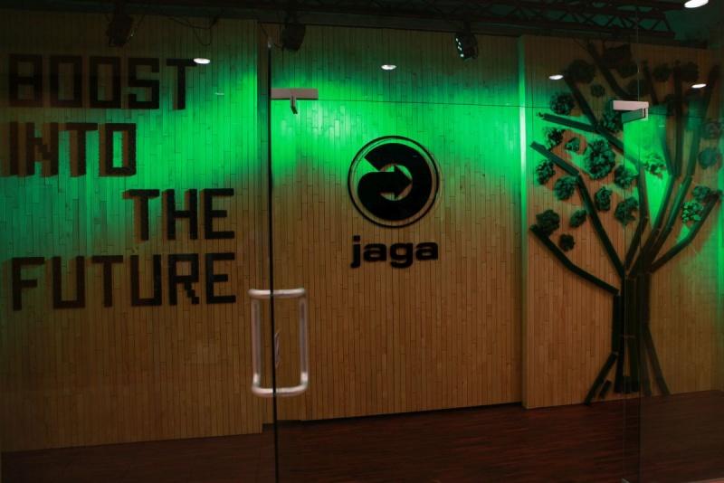 Oprócz „zawartości” salonu na uwagę zasługuje również estetyka jego wnętrza. Gości wita oryginalna ściana wyłożona mozaiką z recyklowanego drewna, symboliczny napis „Boost Into The Future” oraz drzewo-symbol życia wykonane ze zużytych wymienników ciepła grzejników Jaga. Aranżacja nawiązuje do filozofii firmy, w której głównymi wartościami są ekologia i kreatywność.