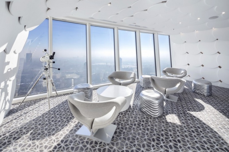 Nowa odsłona biura polskiego oddziału dewelopera Ghelamco została zrealizowana we własnej, flagowej inwestycji – budynku Warsaw Spire na jednym z najwyższych pięter wieżowca. Design biura został oparty o lata eksperymentów i badań prowadzonych na potrzeby produkcji wzornictwa przemysłowego. Niemal wszystkie elementy wnętrza: od wykładziny, poprzez meble, okładziny ścienne, a nawet sufity zostały wykonane według projektu Maca Stopy.