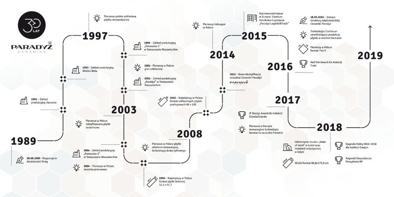 Ceramika Paradyż obchodzi w tym roku jubileusz 30-lecia istnienia na rynku. Przez trzy dekady udało się zbudować silne przedsiębiorstwo, które dziś jest wizytówką polskiego przemysłu na świecie. Okrągła rocznica pozwala na podsumowanie dotychczasowych sukcesów, jak i wyznaczenie planów rozwoju na przyszłość.