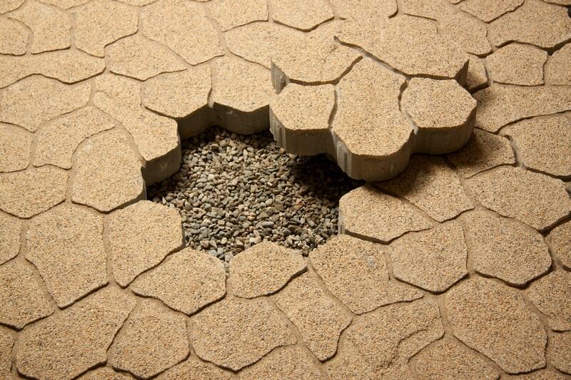 Każdy z elementów nowej kostki firmy Bruk-Bet przybiera formę połączonych ze sobą, nieregularnych wieloboków. Zabudowę nawierzchni Monorytem wykonuje się korzystając z sześciu możliwych sposobów ułożeń, co pozwala uzyskać dynamiczny układ spoin.