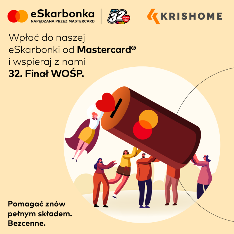 Od wielu lat KRISHOME gra razem z WOŚP. To tradycja, która potrwa do końca świata i o jeden dzień dłużej. Wzorem poprzedniego Finału, KRISHOME założył również specjalną eSkarbonkę. Dzięki niej w szybki sposób można wpłacić dowolną kwotę i wesprzeć akcję. Każda złotówka ma znaczenie, więc zachęcamy do wsparcia tej szlachetnej inicjatywy.