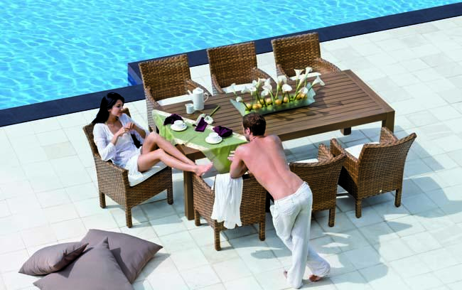 Do produkcji mebli wykorzystano Resystę, imitującą drewno, włókno Mirotex, przypominające wyglądem naturalny rattan, a także ręcznie polerowane aluminium. Dzięki nim meble są nie tylko trwałe, ale też eleganckie. Zarówno Resysta, jak i Mirotex to materiały odporne na działalnie czynników atmosferycznych, takich jak słońce, deszcz, a nawet słona woda. Meble wykonane z tych surowców są łatwe w utrzymaniu i nie wymagają specjalnej pielęgnacji.