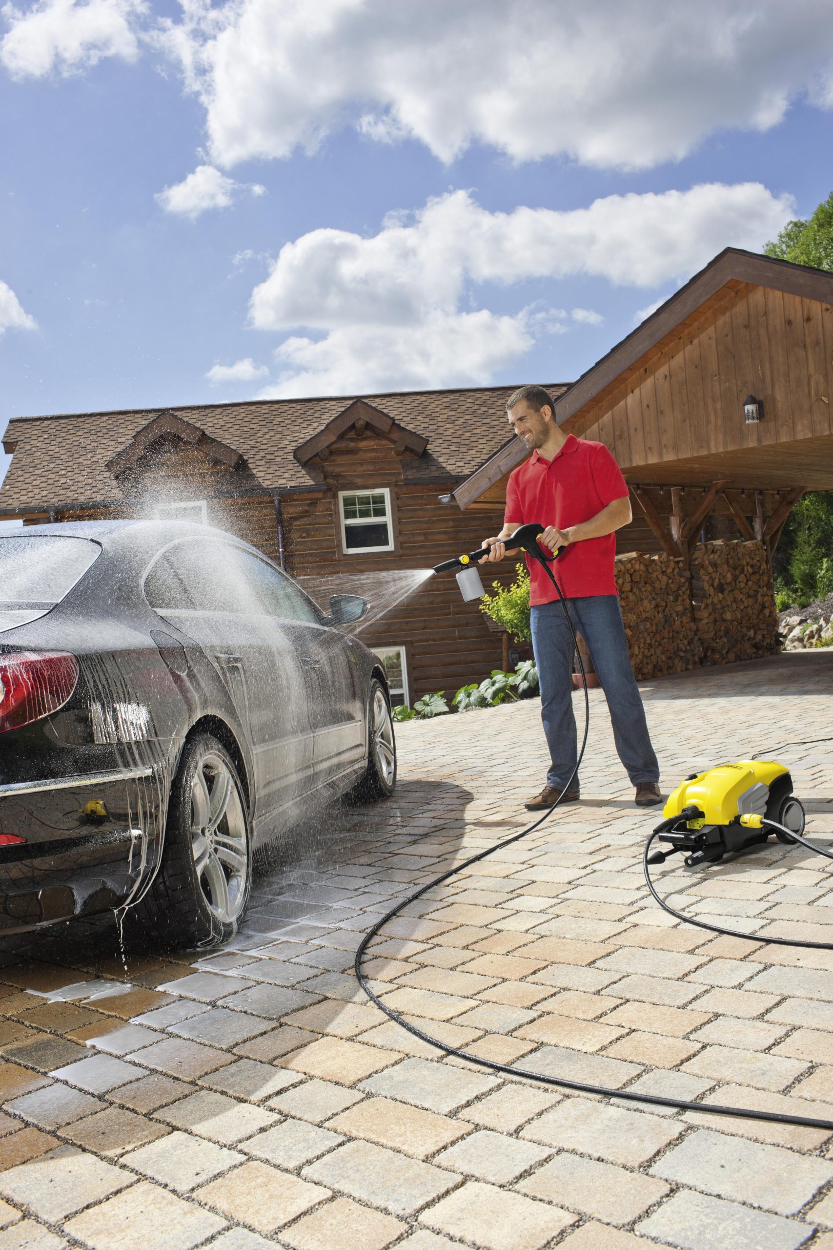 Użytkownik znajdzie szereg praktycznych ulepszeń i ułatwień: system szybkozłącza Quick Connect – szybkiego podłączania węża wysokociśnieniowego do urządzenia i pistoletu spryskującego, aluminiowy uchwyt teleskopowy i dodatkowy uchwyt do przenoszenia w dolnej części, wężyk ssący środka czyszczącego oraz koła, które ułatwiające transport. Wyposażenie obejmuje wąż wysokociśnieniowy z pistoletem (9m), lancę vario-power oraz lancę z dysza rotacyjną.