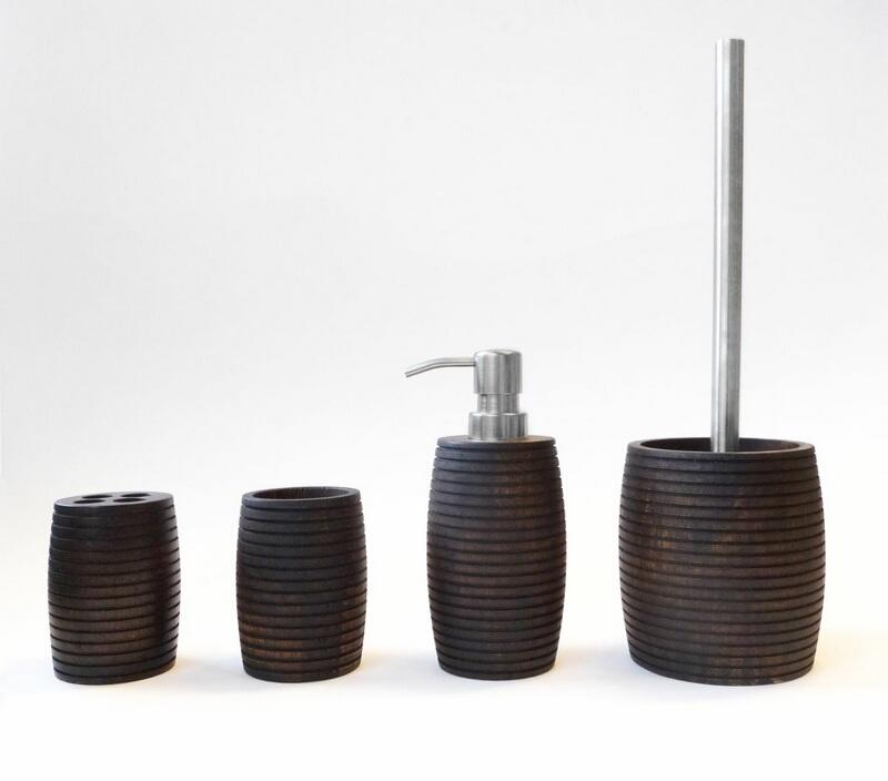 Równie wyrazistą stylistycznie kolekcją jest Native. Taki odbiór dodatków wynika z dwóch parametrów: kolorystyki (ciemny, przecierany złotem brąz) oraz formy – elementy o wrzecionowatym kształcie poprzedzielane są rytmicznie powtarzającymi się nacięciami, co nadaje im lekko etniczny charakter. Dodatki wykonane z naturalnego drewna znakomicie sprawdzą się na przykład w łazience utrzymanej w stylu orientalnym. Przeciwwagą do obu tych mocnych form formy wydają się być akcesoria Doppio. Cylindryczne w kształcie elementy wykonane zostały z białej ceramiki. Jak sugeruje nazwa (doppio, z włoskiego podwójne) są one dwudzielne: góra formy jest śnieżnobiała, dół w cienkie jasnoszare paski. Dodatki Doppio są uzupełnieniem oferty tekstyliów o tej samej nazwie, utrzymanych w podobnej kolorystyce (góra biała, dół jasnoszary). Podobnie delikatna estetycznie jest także seria Provence, nawiązująca motywem dekoracyjnym do rejonu Francji o tej właśnie nazwie. Dodatki w kształcie trapezu sygnowane są „metką” „Savon de Provence, extra pur, 72% d`huile” (Mydło prowansalskie, czyste, 72% zawartości oleju). Prowansja, położona w ciepłym, śródziemnomorskim klimacie, słynie m.in. produkcji naturalnego mydła, którego składniki oparte są na oliwie z oliwek, olejkach roślinnych i glicerynie. Mydła prowansalskie cenione są przez konsumentów za naturalność oraz znakomite właściwości nawilżające i odżywcze. Do tych cech nawiązuje również stylistyka dodatków łazienkowych marki Sealskin: naturalne są kolory elementów (biały i len) oraz materiał z jakiego zostały wykonane, czyli ceramika.