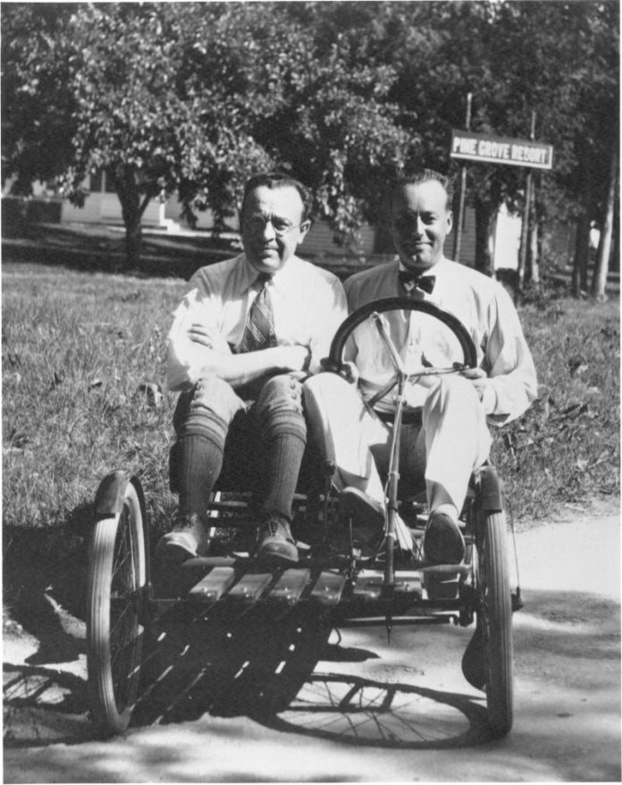 Na czarno-białym zdjęciu „Flyer” – założyciele Briggs&Stratton: Harold Stratton (z lewej) i Stephen Briggs (z prawej).
