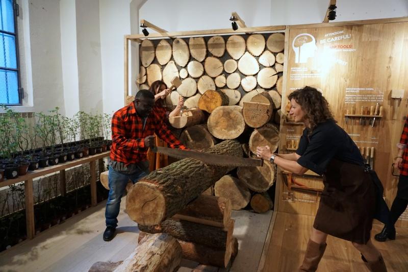 „Stolarnia Zmysłów/Sensorial Carpentry” ukazywała drewno w sposób uczciwy i fachowy, ale przede wszystkim nieoczywisty. Można w niej było poczuć się niczym stolarz z krwi i kości – poznać drewno z całkiem nowej perspektywy. Przy znanej wielbicielom designu mediolańskiej Via Tortona, słynącej z wielu showroomów, warsztatów i studiów projektowych, na siedem kwietniowych dni wybudowana została wyjątkowa przestrzeń wystawiennicza. Interaktywna instalacja była przede wszystkim pachnącym drewnem warsztatem, gdzie oprócz setek przepięknych sadzonek drzew, pojawiło się surowe drewno i narzędzia. Każdy z odwiedzających mógł stać się na chwilę drwalem, artystą, projektantem, ubrać w kraciastą koszulę, nałożyć brodę i ruszyć do akcji.