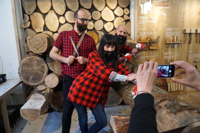 Pachnący lasem warsztat Barlinka, Tabandy i „Design Alive” okazał się być strzałem w dziesiątkę i był naprawdę miłym zaskoczeniem dla publiczności przyzwyczajonej raczej do wszechobecnych w Mediolanie napisów „don’t touch”. Tym razem można było robić wszystko, nawet zmienić się w brodatego drwala!