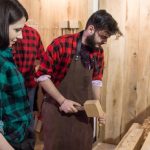 Przygotowane dla odwiedzających narzędzia pamiętają wiele starych stolarni i kawałków drewna – praca z nimi jest jak podróż w czasie. Piła dwuręczna, potocznie nazywana „moja-twoja” była świetną zabawą w rywalizację. Heble i dłuta wprowadzały gości w kolejne etapy kształtowania, dzielenia i wyrównywania materiału. Wiertarki ręczne, papiery ścierne i dłuta rzeźbiarskie to narzędzia, które pozwoliły zagłębić się w szczegóły i w pełni zrealizować wykończenie. Drewno ze stolarni zapamiętało każdą ingerencję naszych gości dzięki czemu przywieźliśmy do Polski wyjątkową pamiątkę po tegorocznym tygodniu designu.