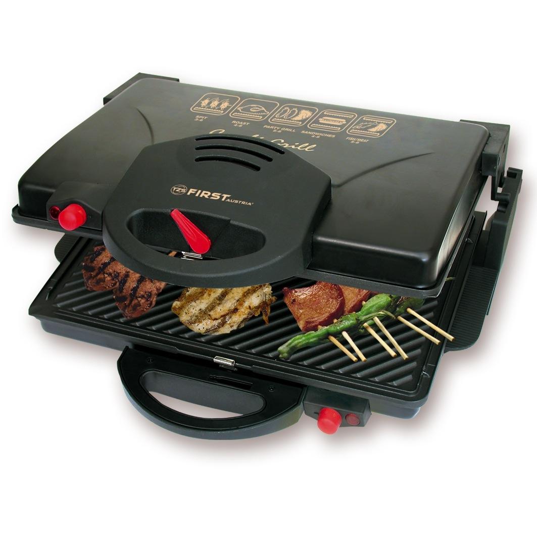 Zamykany grill elektryczny marki First Austria to urządzenie energooszczędne, tanie, a także proste w obsłudze. Nie zajmuje wiele miejsca. Można na nim smażyć mięso, ryby, warzywa, pieczywo, a nawet owoce. Posiada dwie dwustronne płyty grzejne o płaskiej i grillowej powierzchni, co sprawia, że przyrządzane specjały będą równomierne przypiekanie z obu stron. Rowkowana powierzchnia umożliwia np. opiekanie mięs czy tostów, a gładka – smażenie np. jaj. Sprzęt pokryto powłoką z teflonu, która chroni przed przywieraniem, a także przypalaniem się potraw.