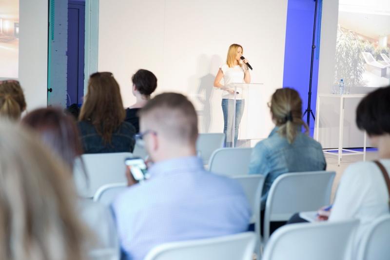 Przedstawicielka KLAFS – Magdalena Sławska opowiadała o prawidłowym podziale przestrzeni SPA na strefy. Zwracała uwagę na najczęściej popełniane błędy podczas projektowania, radziła w jaki sposób ich uniknąć oraz pokazywała przykłady unikalnego designu w projektowaniu saun i miejsc wellness. Ewelina Gawlik, właścicielka concept store Muppetshop przedstawiła zebranym marki z którymi współpracuje, w tym Petite Friture oraz pokazała dobre rozwiązania z zakresu aranżacji wnętrz z zastosowaniem mebli oraz przedmiotów z oferty jej firmy. Agnieszka Polkowska, przedstawicielka Studia Prostych Form pokazała najnowsze rozwiązania technologiczne dotyczące zastosowań mebli w przestrzeni publicznej oraz zalety i możliwości zastosowania materiału przyszłości – ECOMALTY. Dmitry Ageev i Kinga Kosińska przybliżyli możliwości firmy HABE posiadającej własną stolarnię i ślusarnię oraz zaprezentowali markę FAM FARA i meble KUBBIKI produkowane ze sklejki brzozowej z wykorzystaniem najnowszych technologii. Przedstawiciele IntuitionBathrooms, dystrybutora luksusowych angielskich produktów wyposażenia łazienek opowiadali o markach, z którymi współpracują oraz o otwartości firm na potrzeby projektowe i możliwościach spełniania oczekiwań architektów. Natomiast Agnieszka Smolczyńska ze Spectra Lighting poprowadziła bardzo interesującą prelekcję na temat roli oświetlenia LED, wykorzystania go do tworzenia odpowiedniego nastroju oraz możliwościach najróżniejszych zastosowań w przestrzeniach publicznych. Obrazowo wytłumaczyła także jakie są różnice w jakości różnych rodzajów oświetlenia LED oraz pokazała wpływ nieodpowiedniego doboru świateł we wnętrzu.