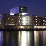 Nowy hotel hiszpańskiej grupy nH Hoteles stał się symbolem Osthafen już zaraz po otwarciu. Daleko wystająca poza obrys fundamentów nadbudówka przypomina kształtem żuraw portowy i jest w całości przeszkolna. Dzięki temu goście czują się tak, jakby stali na wysuniętej ponad Sprewę, 21-metrowej platformie. Autorem projektu jest znany architekt Siergiej Tchoban ze spółki projektantów „nps Tchoban Voss GbR”.