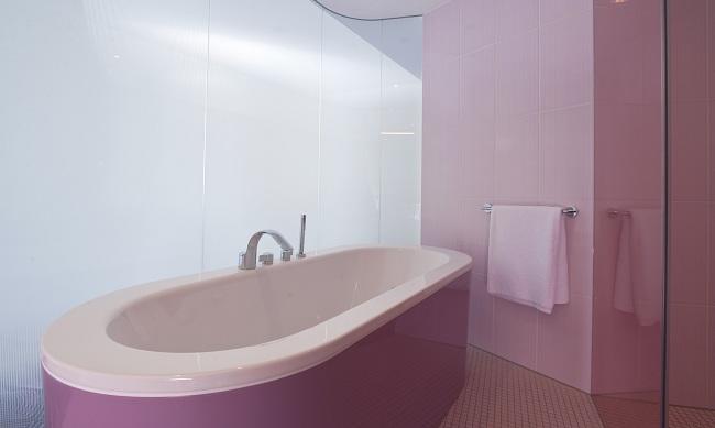 Karim Rashid realizuje swoje pomysły aż do poziomu hotelowych łazienek. Z wielkim wyczuciem kreuje tu nowe trendy i stwarza luksusowe, zindywidualizowane scenariusze, które na zawsze zapisują się w pamięci gości. W 46 pokojach typu suit nowojorczyk stworzył za pomocą wolnostojących wanien Kaldewei optyczne akcenty, zapraszając gości do relaksu. Zastosował tu wanny typu Classic Duo Oval Wide autorstwa renomowanego, mediolańskiego biura projektowego Sottsass Associati. Łączą one w sobie klasyczną elegancję i purystyczny design, wyróżniają się dzięki ponadczasowemu i wyważonemu kształtowi, podkreślając spójny język formy. Szczególnym akcentem wzorniczym jest elegancka, jednoczęściowa obudowa, która doskonale harmonizuje z klasycznym kształtem wanny oraz zapewnia całkowitą swobodę w ustawieniu wanny w pomieszczeniu. Do większości, luksusowych pokoi typu suit Karim Rashid wybrał modele wanien w białym kolorze, różnicując kolor obudowy, co pozwoliło projektantowi na grę kontrastami. I tak 30 wanien ma białą, a 11 luksusową, czarną obudowę. W 5 pokojach całość zaprojektowano w niezwykłym odcieniu lawendy, tworząc w ten sposób specjalną kompozycję kolorystyczną. Przestronność wanien Classic Duo Oval Wide o wymiarach 180 x 80 cm wykonanych ze stali emaliowanej o grubości 3,5 mm oferuje gościom hotelowym nieograniczoną wygodę podczas kąpieli oraz umożliwia relaksującą kąpiel także we dwoje. Wewnętrzny kształt wanny, dzięki dwóm identycznym podparciom pod plecy oraz odpływowi pośrodku, zaprasza wręcz do komfortowego zanurzenia się w wodzie, umożliwiając kąpiącym całkowitą swobodę ruchów.