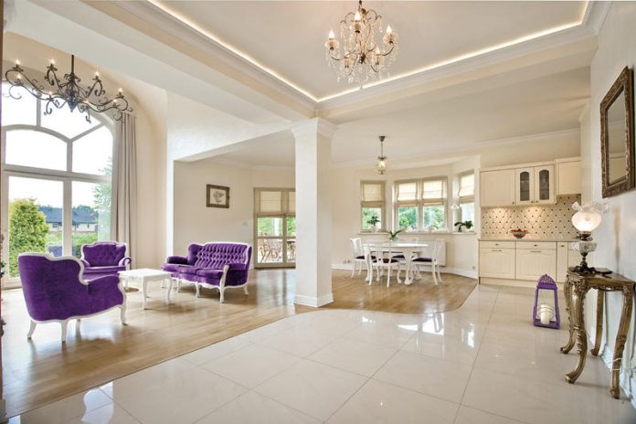 Właściciele prezentowanego domu, urządzając swoje cztery kąty, zrealizowali marzenie o posiadaniu domu, w którym mogą cieszyć się spokojem i przestrzenią. Ogólny zarys koncepcji wnętrz powstał w głowach małżonków. Pani Ania i pan Piotr od samego początku dokładnie wiedzieli jak wszystko ma wyglądać, a w sprecyzowaniu tonacji barwnej pomogła im pani architekt Oksana. W całym domu dominują ciepłe i zarazem bardzo przytulne odcienie kremowe, ochłodzone bielą oraz szeroką gamą fioletów – tak spójna gama kolorystyczna optyczne powiększyła przestrzeń. Na uwagę zasługuje również przenikanie się pomieszczeń, które nie zatraciło lekkości bryły domu.