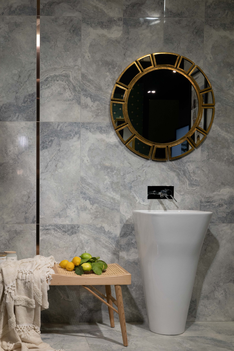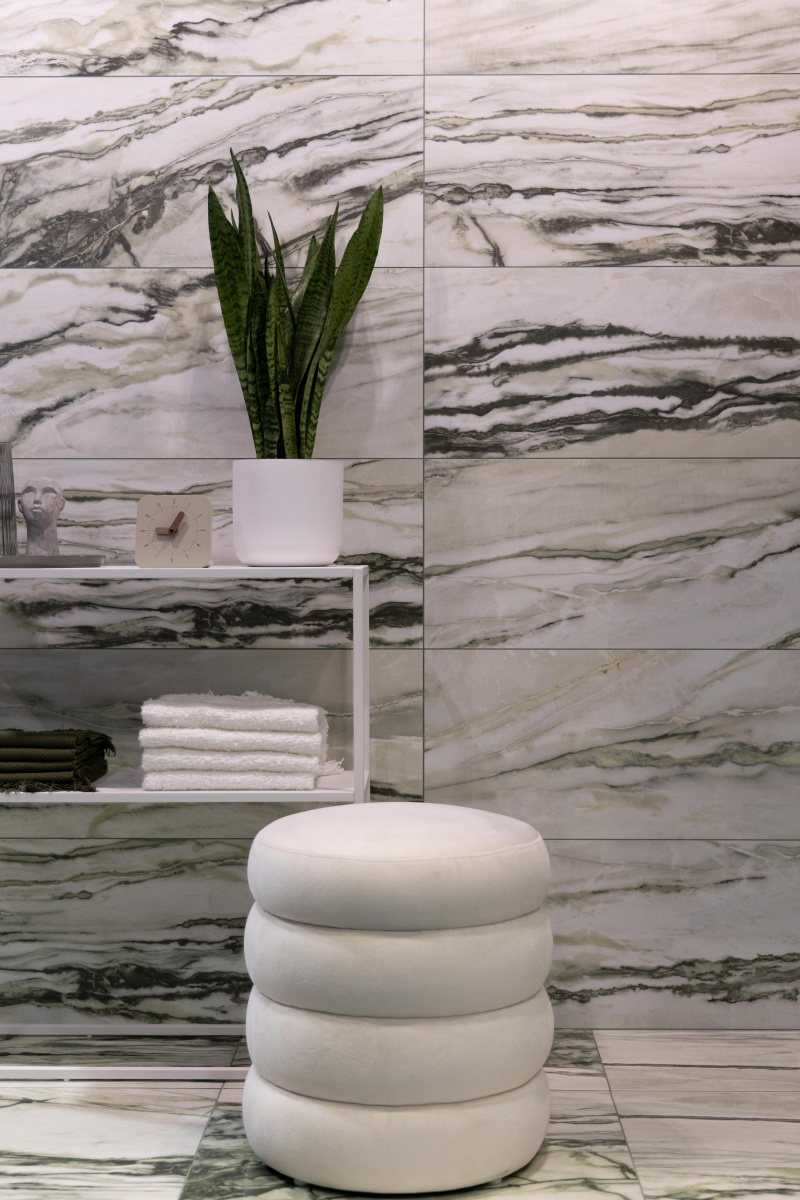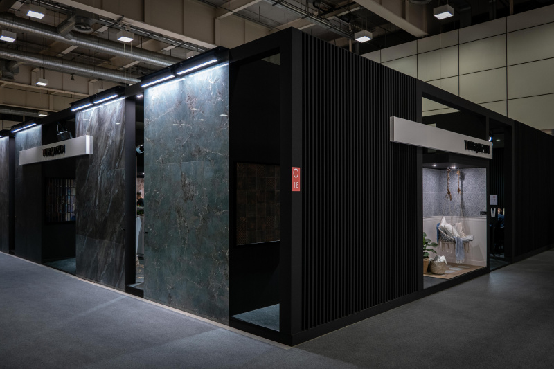 Premierowe kolekcje stworzone przez Macieja Zienia oraz ekspozycję kilkudziesięciu nowych wzorów Grupy Tubądzin można było oglądać na ponad 200 m2 stoiska. Stoisko Tubądzin było podzielone na część ekspozycyjną, w której zaprezentowane zostały aranżacje łazienkowe, strefę z ekspozytorami prototypowych kolekcji oraz kameralne miejsce do prowadzenia rozmów biznesowych. Wśród nowych wzorów goście targów zobaczyli m.in. inspirowaną marokańską sztuką kolekcję Fadma, zachwycającą kolorystycznie kolekcję Calacatta Green, czy łączącą złoto z bielą kolekcję Sophi Oro (kolejno od lewej na zdjęciach).