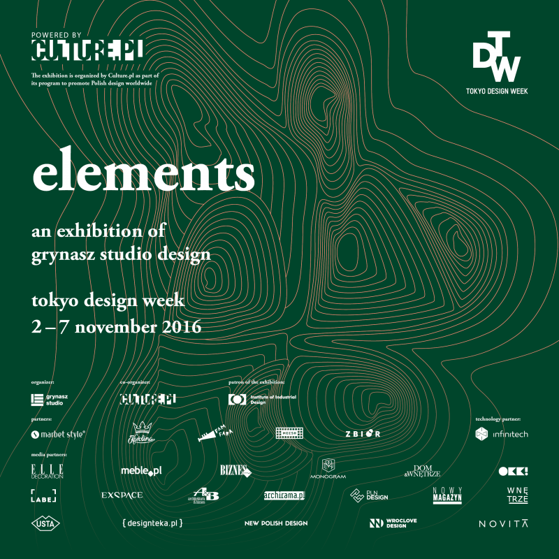 „Elements” – wystawa projektów Grynasz Studio, będąca narracją do obecnego kierunku poszukiwań projektantów, pokazująca efekty współpracy zarówno z dużymi polskimi firmami, parkami technologicznymi jak i manufakturami.