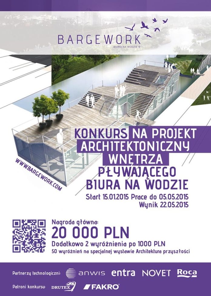 Nowoczesne miejsce dla kreatywnego zespołu, połączenie centrum innowacji ze strefą produktywności oraz uwzględnienie przestrzeni wypoczynku. To główne założenia konkursu „BARGEWORK – BIURO NA WODZIE”, jakie powinni zrealizować uczestnicy tworząc biuro w zbliżonym do natury środowisku. Projekty do drugiego etapu można zgłaszać do 5 maja za pomocą formularza dostępnego na stronie konkursowej http://bargework.com/. Partnerem Technologicznym inicjatywy jest marka Roca.