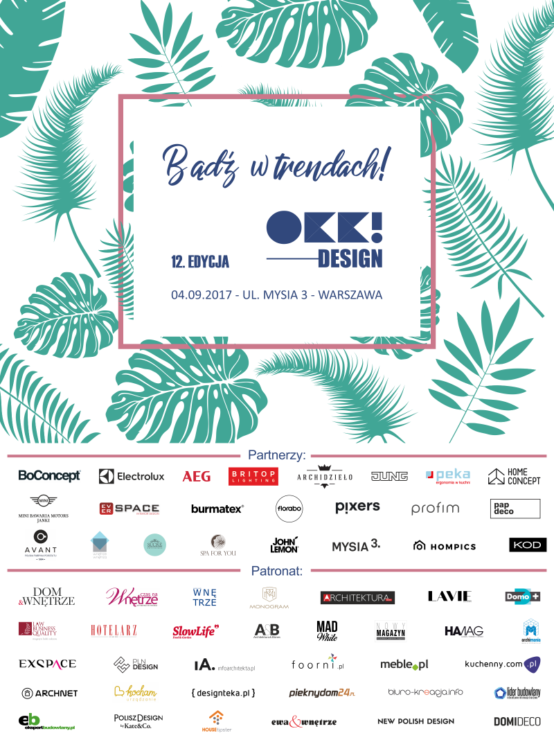 Chcesz wiedzieć co jest obecnie najmodniejsze, najciekawsze, najnowocześniejsze, najbardziej poszukiwane w świecie wyposażenia wnętrz? Koniecznie weź udział w 12. już edycji OKK! design – edukacyjnym spotkaniu dla designerów, architektów i projektantów wnętrz, które odbędzie się 4 września 2017 r. w przestrzeni Mysia 3 w Warszawie.