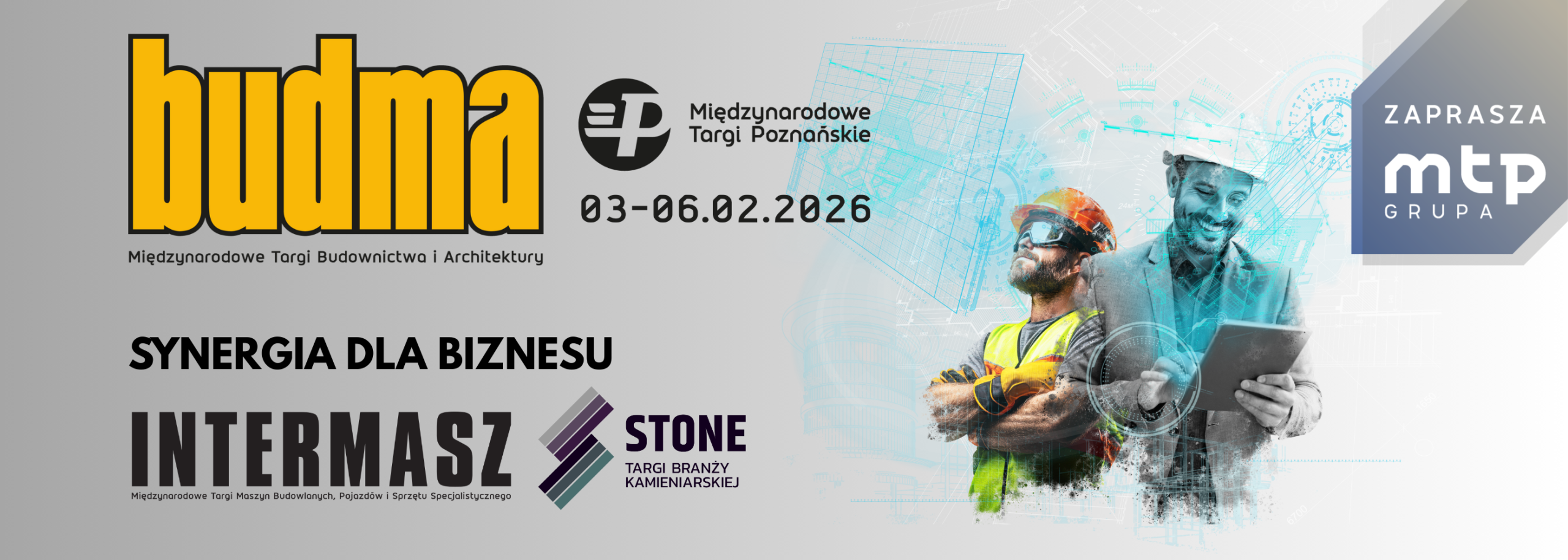 Targi BUDMA odbędą się w dniach 3-6 lutego 2026. Towarzyszyć im będą: Międzynarodowe Targi Maszyn Budowlanych, Pojazdów i Sprzętu Specjalistycznego INTERMASZ, Rozwiązania dla Budownictwa Infrastrukturalnego INFRATEC oraz Targi Branży Kamieniarskiej STONE.