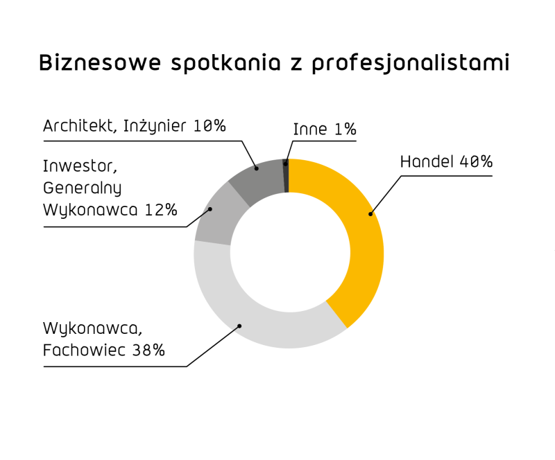 Najsilniej reprezentowaną grupą podczas edycji 2024 byli przedstawiciele sieci handlowych, którzy stanowili aż 40% ogólnej liczby osób uczestniczących w wydarzeniu. 38% łącznej liczby profesjonalistów obecnych na targach stanowiła grupa wykonawców i fachowców. Pozostałe 22% odwiedzających Targi BUDMA 2024 to inwestorzy oraz architekci.