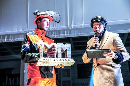 Marka Husqvarna przygotowała też prezent dla prowadzącego imprezę, a zarazem redaktora naczelnego magazynu MaleMen- Oliviera Janiaka. Gospodarz wydarzenia otrzymał pamiątkowe logo magazynu, także wyrzeźbione za pomocą pilarki łańcuchowej. Widać było, że podarunek wzbudził zainteresowanie zaproszonych gości.