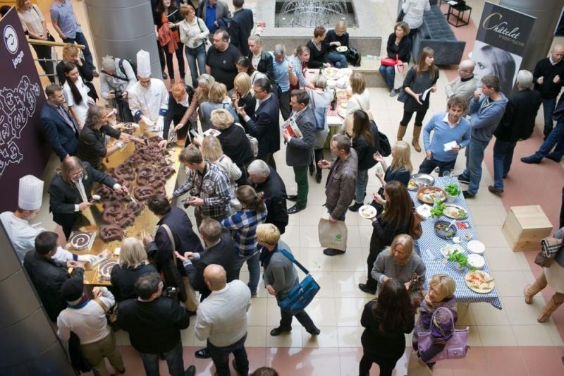Jednym z bohaterów otwarcia JAGA ART STUDIO był też czekoladowy grzejnik Heatwave wykonany przez mistrzów z firmy Wedel. Słodki grzejnik rzeczywistych rozmiarów wzbudził aplauz gości, którzy podczas spotkania mogli podziwiać zarówno proces jego powstawania, jak i delektować się wybornym smakiem czekolady.