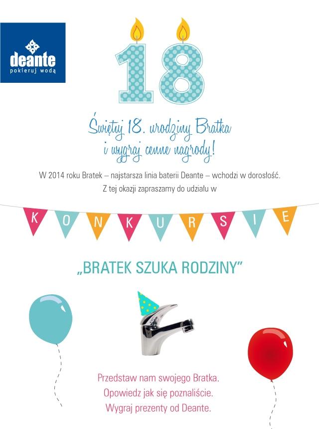 W 2014 roku Bratek – najstarsza linia baterii marki Deante – wchodzi w dorosłość. Z tej okazji firma ogłasza konkurs na najciekawsze zdjęcie baterii w aranżacji kuchennej i łazienkowej. Nagrodę otrzyma również właściciel najstarszego Bratka oraz autor najciekawszego opisu związanego z jego użytkowaniem. Konkurs rozpoczął się 1 kwietnia i potrwa do końca miesiąca.