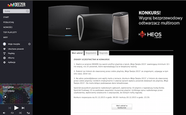 Informujemy z przyjemnością, że na platformie serwisu muzycznego Deezer, wystartował konkurs, którego uczestnicy mają możliwość wygrania trzech bezprzewodowych głośników multiroom – HEOS by Denon.